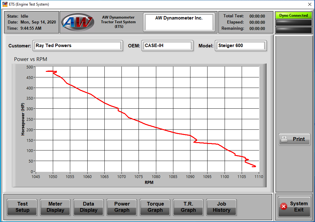 O software ETS-XT, instalado em um laptop conectado ao DynoPro 2100sXT, permite gerar e armazenar relatórios de teste detalhados, exibindo potência, torque, RPM, aumento de torque, porcentagem de carga e temperatura do dinamômetro em gráficos claros e fáceis de interpretar. Ele também permite o envio desses relatórios ao fabricante original para reclamações de garantia ou para apresentar resultados durante inspeções de serviço. Inclui a exportação automática de um relatório de teste em formato Excel para fácil consulta e acompanhamento de cada teste realizado.